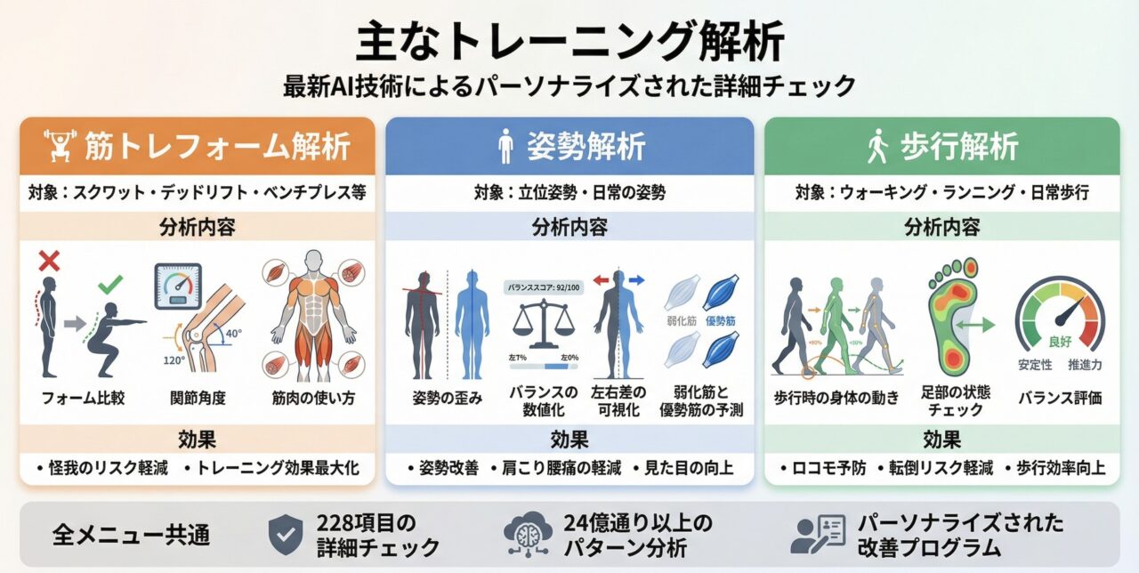 正しいフォームとの比較で改善点を明確化 怪我のリスク軽減、トレーニング効果を最大化